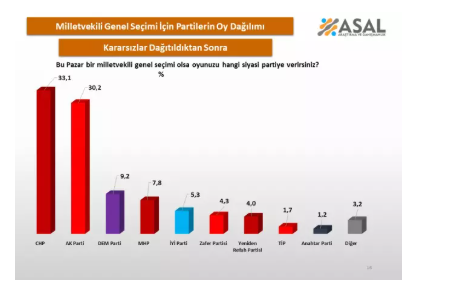 21-28 Mart tarihleri arasında Asal Araştırma şirketi tarafından 26 ilde yapılan seçim anketi sonuçları kamuoyu ile paylaşıldı.