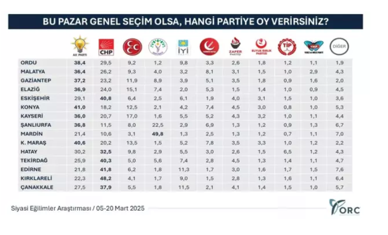 ORC Araştırma Şirketi, Türkiye'nin 30 büyükşehirinde gerçekleştirdiği kapsamlı anketin ortaya çıktığını açıkladı.