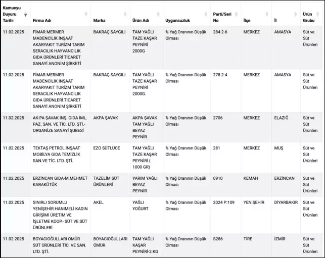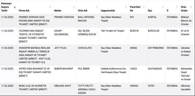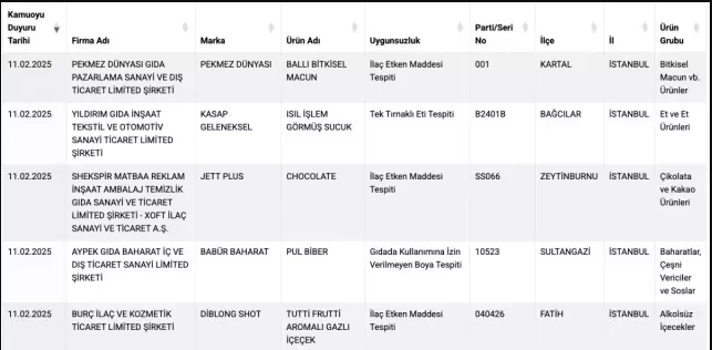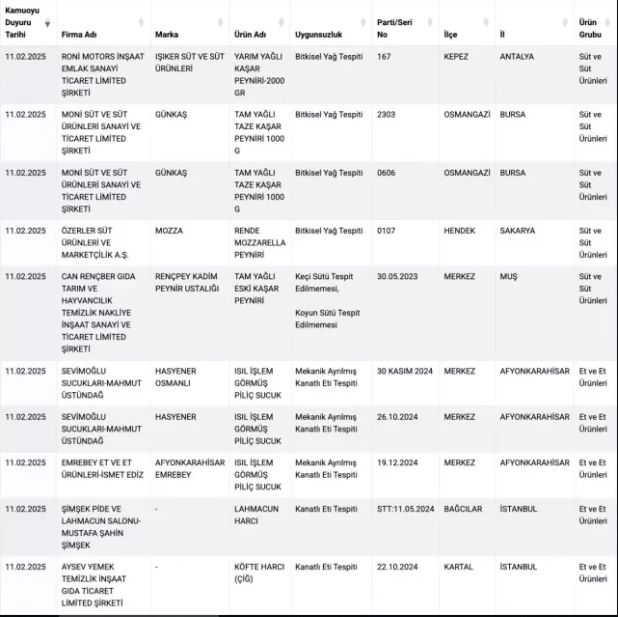 Tarım ve Orman Bakanlığı, tüketici sağlığını tehdit eden gıda ürünlerini ifşa etmeye devam ediyor.