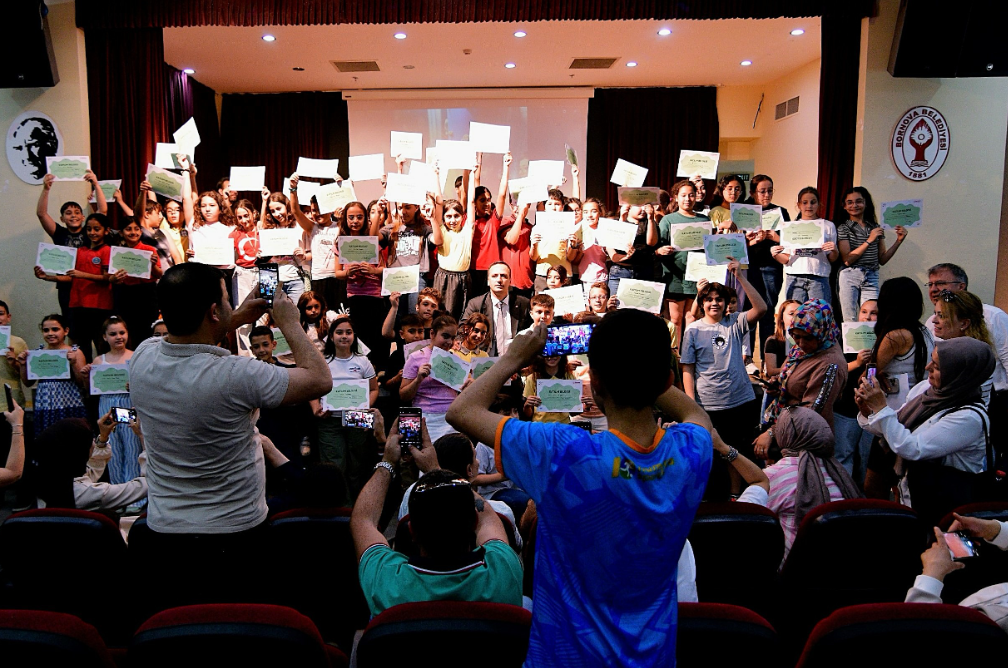 Bornova Belediyesi tarafından hizmete sunulan Mevlana Toplum ve Bilim Merkezi, 2025 Bahar Dönemi Katılım Belgesi Töreni ile bir dönemi daha başarıyla tamamladı. Bilim Kulüpleri ile bu yıl ilk kez açılan Python Programlama Atölyesi’ne katılan toplam 177 öğrenciye katılım belgeleri takdim edildi.