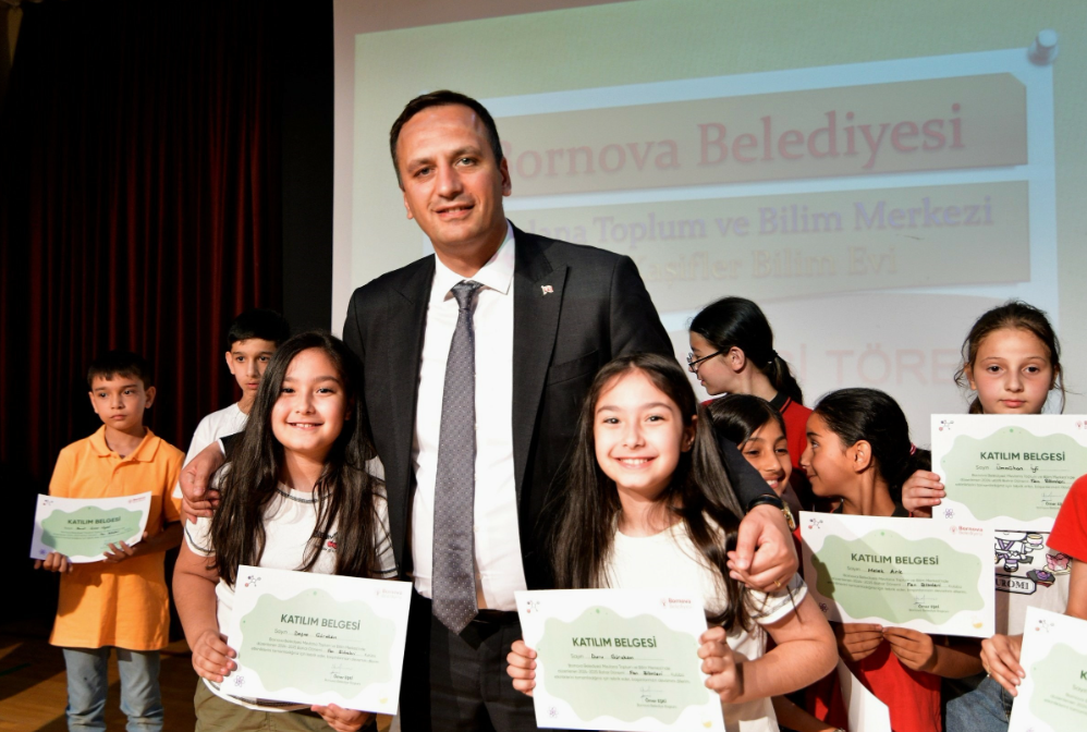 Bornova Belediyesi tarafından hizmete sunulan Mevlana Toplum ve Bilim Merkezi, 2025 Bahar Dönemi Katılım Belgesi Töreni ile bir dönemi daha başarıyla tamamladı. Bilim Kulüpleri ile bu yıl ilk kez açılan Python Programlama Atölyesi’ne katılan toplam 177 öğrenciye katılım belgeleri takdim edildi. Törene Bornova Belediye Başkanı Ömer Eşki’nin yanı sıra öğrenciler, aileleri ve gönüllü eğitmenler katıldı. Etkinlikte, projeye gönüllü destek veren Ege Üniversitesi öğrencilerine de teşekkür belgeleri verildi.Bornova Belediyesi Mevlana Toplum ve Bilim Merkezi / Genç Kaşifler Bilim Evi’nde düzenlenen tören, katılımcılara hem duygusal hem de gurur dolu anlar yaşattı. Bornova Belediye Başkanı Ömer Eşki’nin katılımıyla gerçekleşen törende, öğrenciler emeklerinin karşılığı olan belgelerini almanın heyecanını yaşadı. Aileler de çocuklarının mutluluğuna ortak oldu.Törenin açılış konuşmasını gerçekleştiren Başkan Ömer Eşki, merkezin kuruluşuna dair kişisel anılarını paylaşarak merkezin gelişim sürecini anlattı. 2010 yılında Bornova Belediyesi’nde personel olarak görev yaptığı döneme değinen Başkan Eşki, “2010 yılıydı. Ben 24 yaşında Bornova Belediyesi’nde personel olarak çalışıyordum. Prof. Dr. Kamil Okyay Sındır belediye başkanıydı ve buranın açılışını yapmıştık. Burası yanlış hatırlamıyorsam Türkiye’deki üçüncü bilim merkeziydi. Temel amacımız çocuklara fizik, kimya, biyoloji, matematik ve astronomiyi sevdirmekti” dedi.Başkan Eşki, Mevlana ve Yunus Emre mahallelerinde yaşayan kadınlar ve çocukların bu merkez sayesinde hayatın içine daha aktif bir şekilde dâhil olduklarını belirterek, “Bu bina sizler olmazsanız sadece bir beton yığını olur. Ama sizlerin varlığıyla, çocuklarınıza öğrettiklerinizle, evlerinize taşıdığınız bilgilerle burası çok güzel bir yer hâline geldi. Çocuklarına bir kelime öğretebilmek için seferber olan annelere, buraya yıllardır emek veren eğitmenlerimize ve organizasyonu sürdüren ekip arkadaşlarıma gönülden teşekkür ediyorum” ifadelerini kullandı.10 Mart – 17 Mayıs 2025 tarihleri arasında düzenlenen Bilim Kulüpleri etkinliklerine, ilkokul 4. sınıf ve ortaokul düzeyindeki toplam 165 öğrenci katılım sağladı. On hafta süren program boyunca öğrenciler fizik, kimya ve biyoloji gibi temel bilim alanlarında uygulamalı eğitim aldı. Ayrıca, Ege Üniversitesi’nden 23 lisans öğrencisi “Topluma Hizmet Uygulamaları” dersi kapsamında eğitmen asistanlığı yaparak hem öğrencilere destek verdi hem de kendi hazırladıkları bilimsel içerikleri uygulama şansı buldu.Bu yıl ilk kez başlatılan Python Programlama Atölyesi’nde ise temel programlama eğitimi verildi. Lisans, yüksek lisans ve doktora sonrası araştırmacılara yönelik hazırlanan program, Python dilinin yapısı ve veri bilimine giriş konularını kapsadı. On haftalık eğitimi başarıyla tamamlayan 12 katılımcıya da katılım belgeleri verildi.Bilim Merkezi eğitmenlerinden Aytekin Tan da törende söz alarak yapılan çalışmaların önemine dikkat çekti. Tan, “Çocukların eğlenerek öğrendikleri, merak duygularının beslendiği bir ortam yaratmaya çalışıyoruz. Velilerimizin desteği de bu sürecin en önemli parçası” şeklinde konuştu.Tören, bilimle büyüyen bir geleceğe umutla bakan çocukların yüzlerindeki heyecan ve gururla sona erdi.
