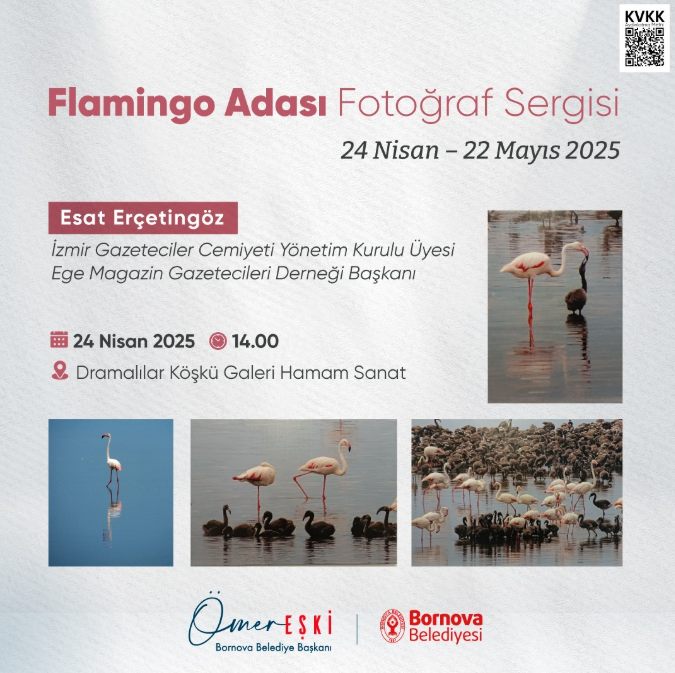 İzmir Gazeteciler Cemiyeti Yönetim Kurulu Üyesi ve Ege Magazin Gazetecileri Derneği Başkanı olan Esat Erçetingöz, sergide yer alan fotoğraflarını, Avrupa’nın en büyük yapay flamingo üreme alanı olan İzmir Kuş Cenneti'nde çekti. Tarım ve Orman Bakanlığı’ndan aldığı özel izinle 6440 metrekarelik Flamingo Adası’nda gerçekleştirdiği çekimlerde, anne flamingoların ve yeni doğmuş simsiyah yavrularının yaşamından kesitler sunan toplam 640 fotoğraf kaydetti. Bu fotoğraflar arasından seçilen 40 kare, sergide izleyiciyle buluşturulacak.Esat Erçetingöz, sergideki çalışmalarıyla ilgili yaptığı açıklamada, İzmir’in sahip olduğu bu doğa zenginliğini korumaya katkı sunmak istediğini belirterek, fotoğrafın farkındalık yaratma konusundaki etkisine inandığını ifade etti.Bornova Belediyesi’nden Sanata ve Doğaya Destek
