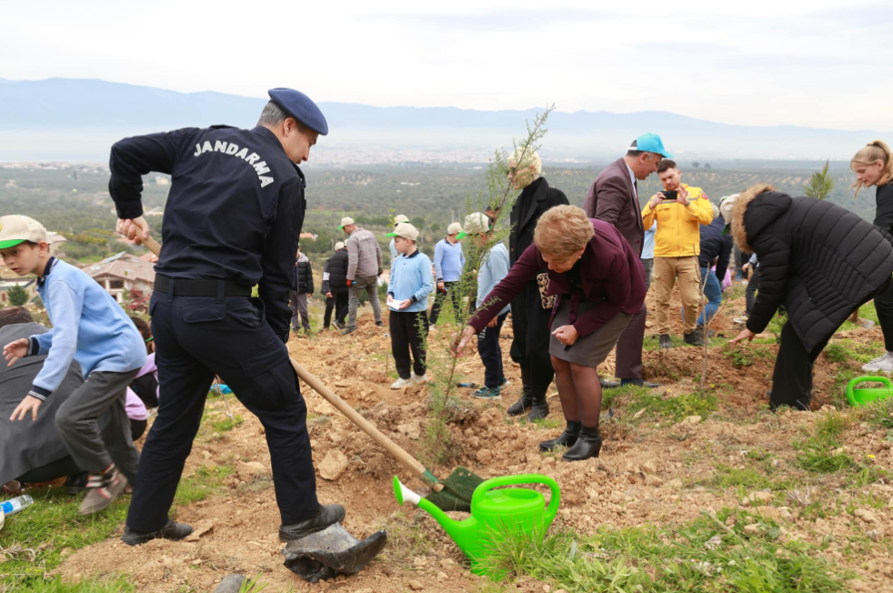 21 Mart Dünya Ormancılık Günü ve Haftası kapsamında, Türkiye genelinde "Orman Vatandır" sloganıyla düzenlenen fidan dikim etkinlikleri, Burhaniye’de de coşkuyla kutlandı. Taylıeli Kırsal Mahallesi’nde gerçekleştirilen etkinlik, doğaya nefes olmak amacıyla toprakla buluşturulan fidanlarla önemli bir adım attı.Etkinliğe, Burhaniye Kaymakamı İlyas Memiş, Burhaniye Belediye Başkan Yardımcısı Ayten Tuna, Burhaniye İlçe Emniyet Müdürü Faik Karabaş, Burhaniye İlçe Jandarma Komutanı Ünal Bayhan, Burhaniye İlçe Milli Eğitim Müdürü Bora Zihni, Burhaniye Orman İşletme Şefi Turgay Aymaz, ilçe jandarma teşkilatı, öğretmenler ve Kızıklı, Şarköy ile Bahadınlı Ortaokulu öğrencileri katıldı.Etkinlik, Kızıklı Ortaokulu öğrencilerinin doğa sevgisini artırmak amacıyla sergilediği müzik dinletisi ile başladı. Ardından, yetkililer tarafından fidan dikimi hakkında katılımcılara eğitim verildi. Eğitimin ardından, etkinlik katılımcıları hep birlikte fidanlarını toprakla buluşturarak, çevreye duyarlı bir farkındalık oluşturdu.T.C. Tarım ve Orman Bakanlığı Orman Genel Müdürlüğü ve diğer ilgili kurumların koordinesiyle düzenlenen etkinlik kapsamında, Türkiye’nin dört bir yanında olduğu gibi Burhaniye’de de binlerce fidan toprakla buluşarak, geleceğe nefes olma yolunda önemli bir adım atıldı.