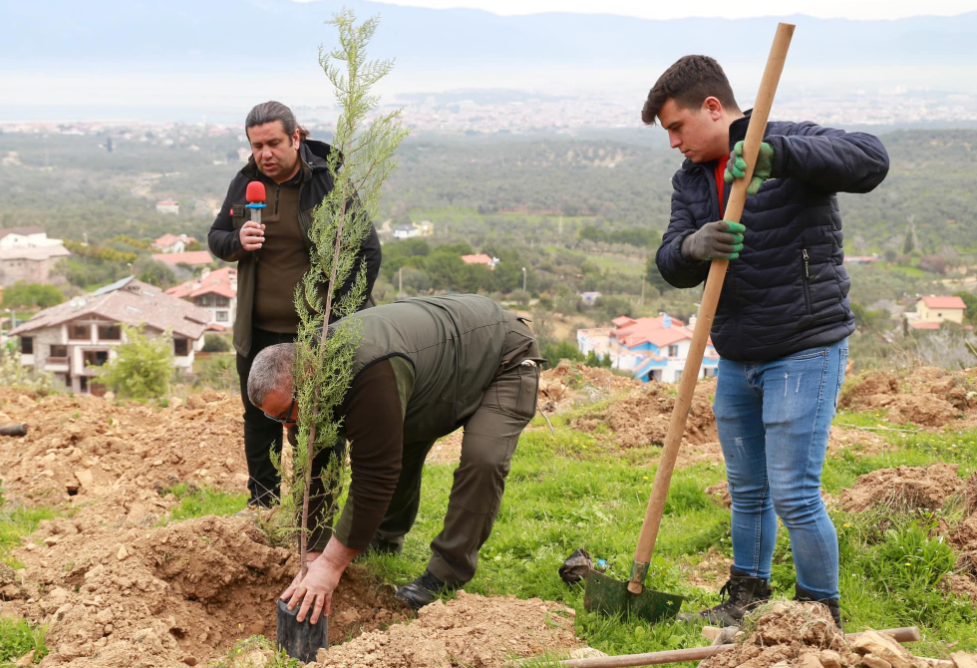 Burhaniye'de Geleceğe Nefes Olacak Fidanlar Toprakla Buluştu