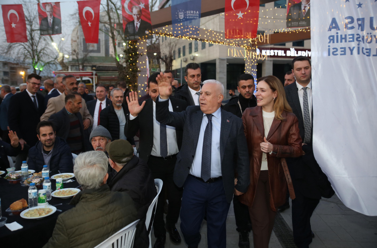Bursa Büyükşehir Belediyesi'nin, ilçelerde düzenlediği iftar programları Kestel ile devam etti. Kestel Meydanı'nda yaklaşık 3000 kişinin katılmasıyla iftar yapılması, Büyükşehir Belediye Başkanı Mustafa Bozbey ve eşi Seden Bozbey, CHP İl Başkanı Nihat Yeşiltaş, CHP Kestel İlçe Başkanı Yıldıray Atlı, Büyükşehir Belediyesi bürokratları, muhtarlar, belediye meclis Üyeleri ve çok sayıda Kestelli katıldı. İftar öncesinde çocuklar için para yatırılan Karagöz gölge oyunu gösterisinde büyük ilgi görüldü. Ardından akşam ezanıyla birlikte hepsi mevcuttu"Çocuklarımızın Gelecekle İlgili Kaygıları Olmasın"İftar sonrası konuşma ya"Ramazan, Paylaşma, Dayanışma ve Kardeşlik Ayıdır"CHP Bursa İl Başkanı Nihat Yeşiltaş, Ramazan'ın paylaşma, dayanışma ve kardeşlik ayı olduğunu vurgulayarak, Kestel'deki iftarların düzenlenmesine öncülük ettiİftarın ardından Bursa Büyükşehir Belediyesi Orkestra Şube Müdürlüğü tarafından bir mini konser verildi. Başkan Mustafa Bozbey, akşam namazının ardından Kestel Akşemseddin Camii'nde başlayanla bir araya gelerek tatlı ikramında bulundu.