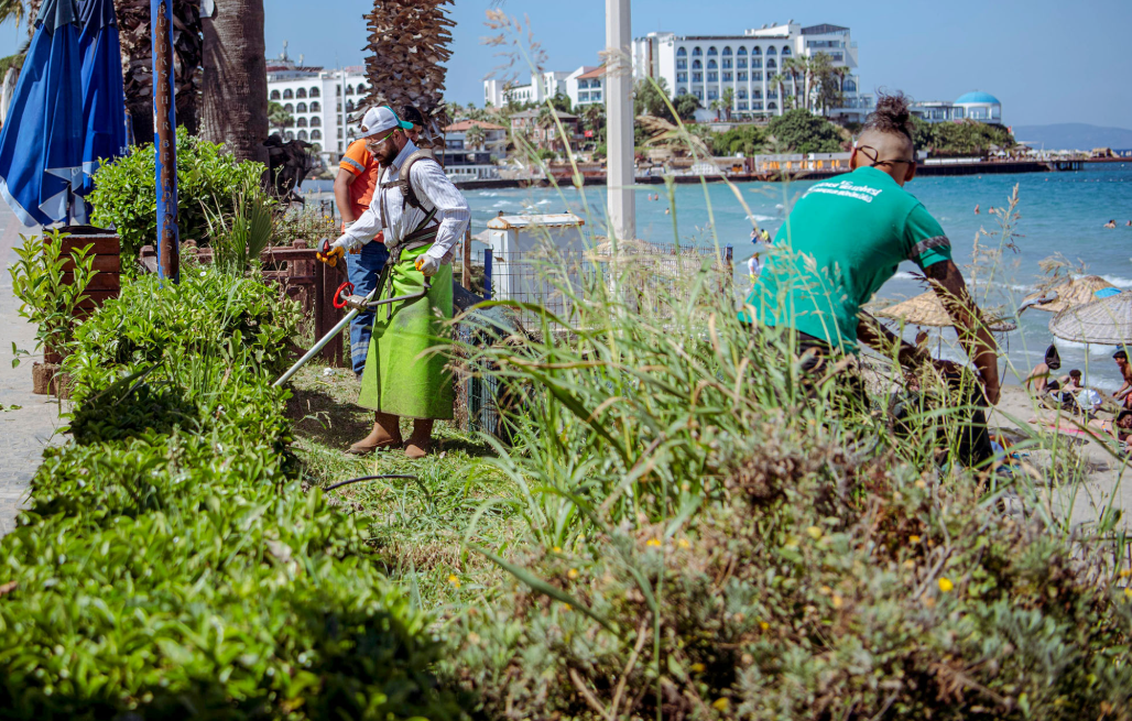 Kuşadası Belediyesi, Kadınlar Denizi sahil şeridinde başlattığı peyzaj ve çevre düzenleme çalışmalarıyla bölgeyi daha yeşil ve estetik bir görünüme kavuşturuyor.
