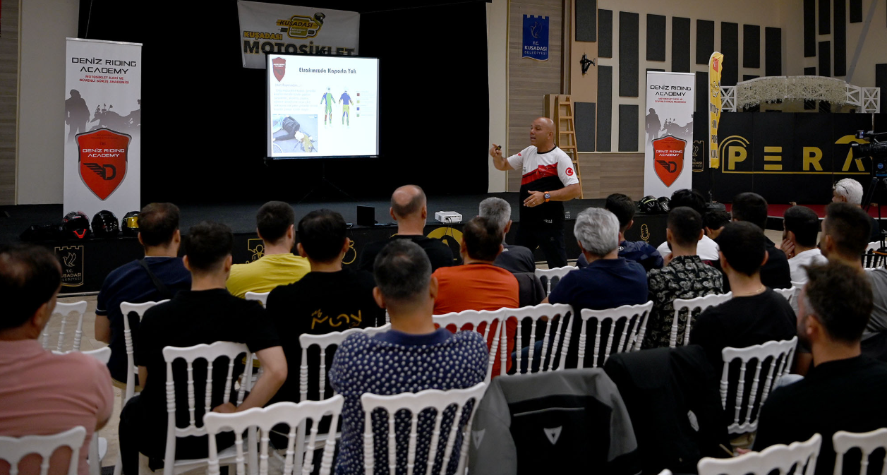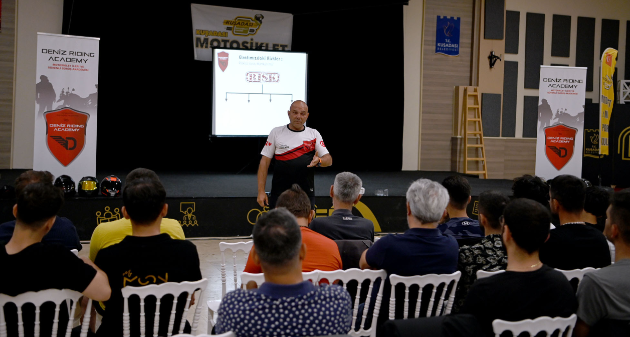 Kuşadası’nda, Deniz Riding Academy, Kuşadası Motosiklet ve Motor Spor Kulübü ile Kuşadası Belediyesi iş birliğiyle "Motosiklet İleri ve Güvenli Sürüş Teori Eğitimi" düzenlendi.
