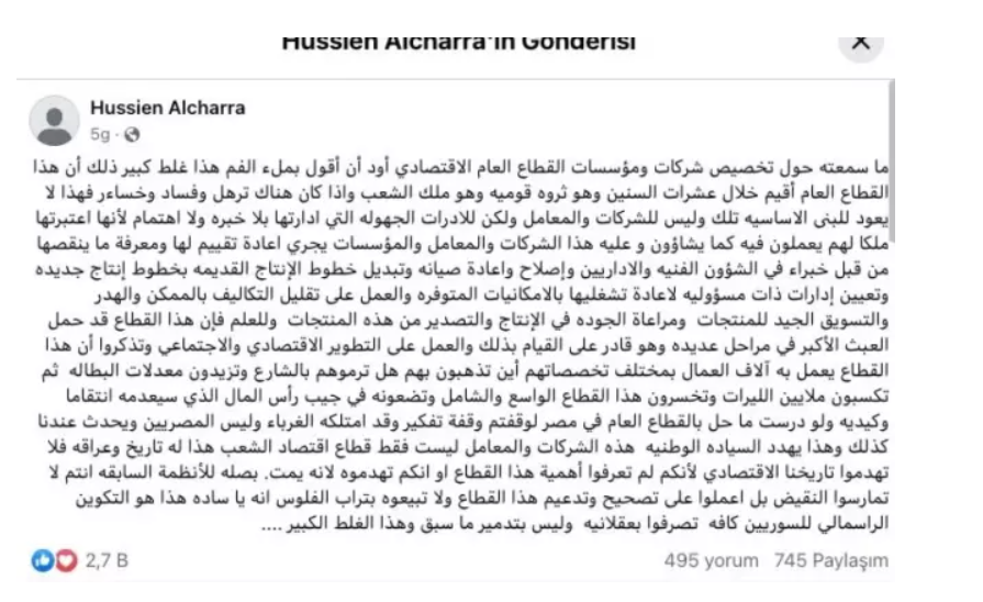 Suriye Cumhurbaşkanı Ahmed Şara'ya Babasından Sert Eleştiri: "Özelleştirme Büyük Bir Hata Olur"