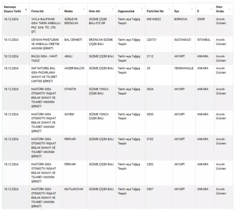 Tarım ve Orman Bakanlığı, gıda sahtekârlığını yapan listelendi ve Türkiye'nin dört bir yanındaki sahte bal skandalı ortaya çıktı.