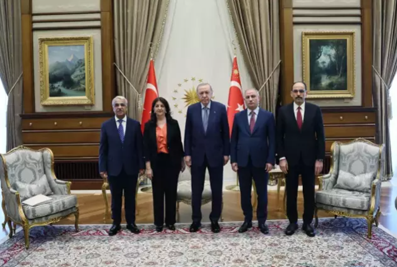 DEM Parti heyeti, Külliye’deki görüşme öncesinde parti genel merkezinde DEM Parti Eş Genel Başkanları Tülay Hatimoğulları ve Tuncer Bakırhan ile bir araya geldi. Heyet, kısa süre önce İmralı Adası’nda terör örgütü elebaşı Abdullah Öcalan ile gerçekleştirdikleri görüşmenin detaylarını parti yönetimiyle paylaştı. Ayrıca, Cumhurbaşkanı Erdoğan ile yapılacak görüşme öncesinde değerlendirmelerde bulunuldu. Heyet, bu görüşmenin ardından Cumhurbaşkanlığı Külliyesi’ne geçti ve Erdoğan tarafından kabul edildi. Yaklaşık bir saat süren görüşmede sürecin mevcut durumu ve olası adımlar ele alındı.Süreçte Yeni Dönem Başlıyor